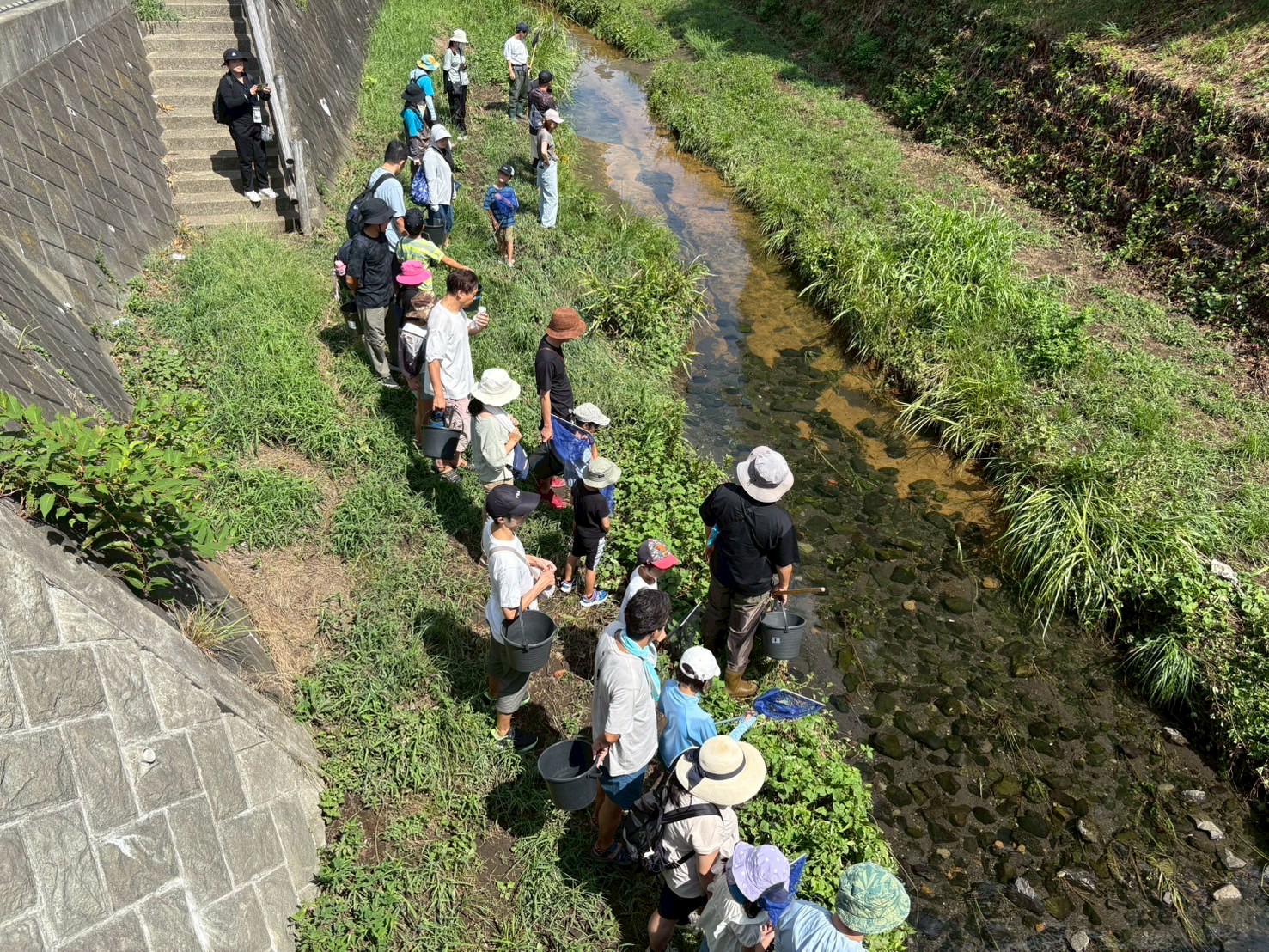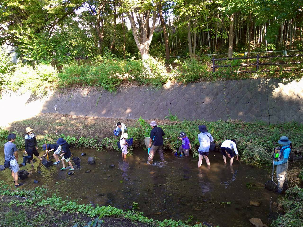 当日は9月とは思えないほどの良いお天気に恵まれてまさに水辺の生き物採集に