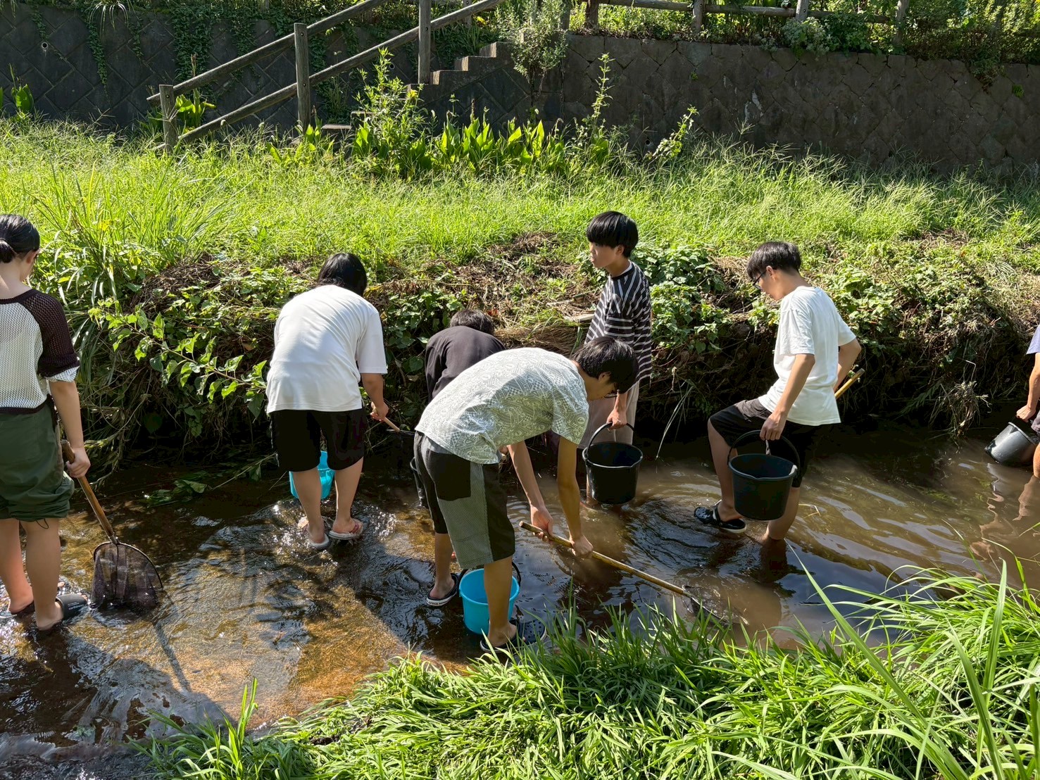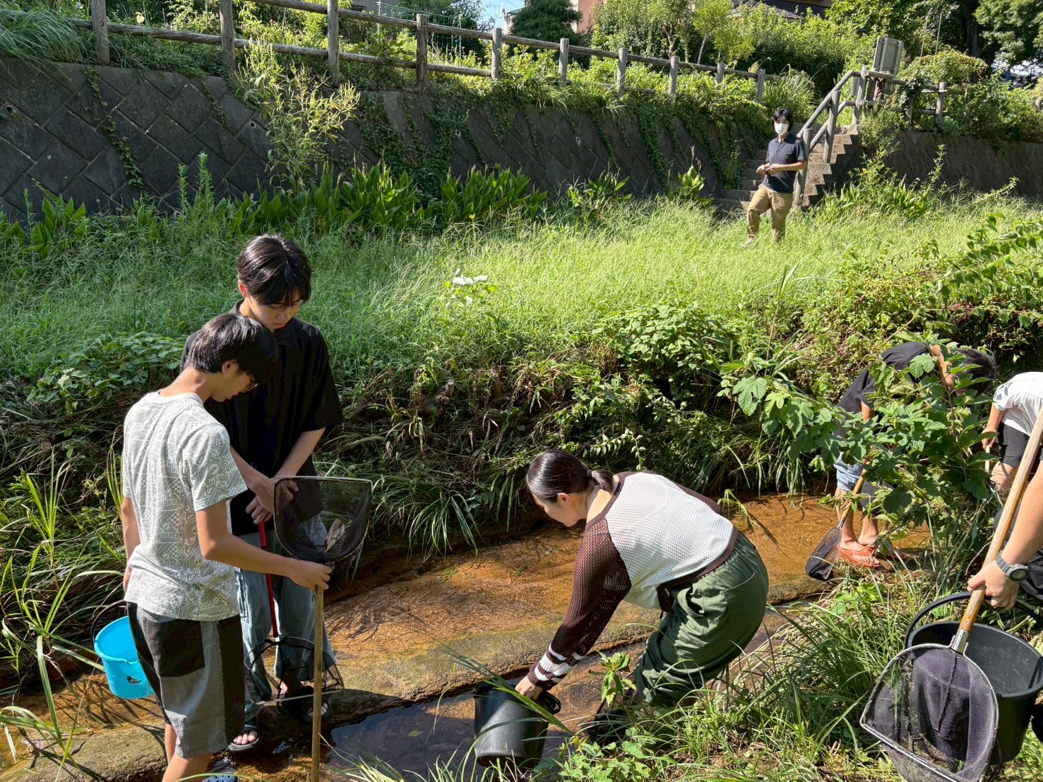 網とバケツを受け取って早速採集場所へ。